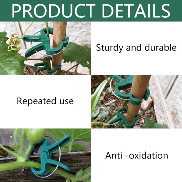 Pagaminti iš aukštos kokybės plastiko ir metalo, šie spaustukai yra tvirti, netoksiški ir sukurti taip, kad atlaikytų atšiaurias oro sąlygas ir kartu apsaugotų jūsų augalus.