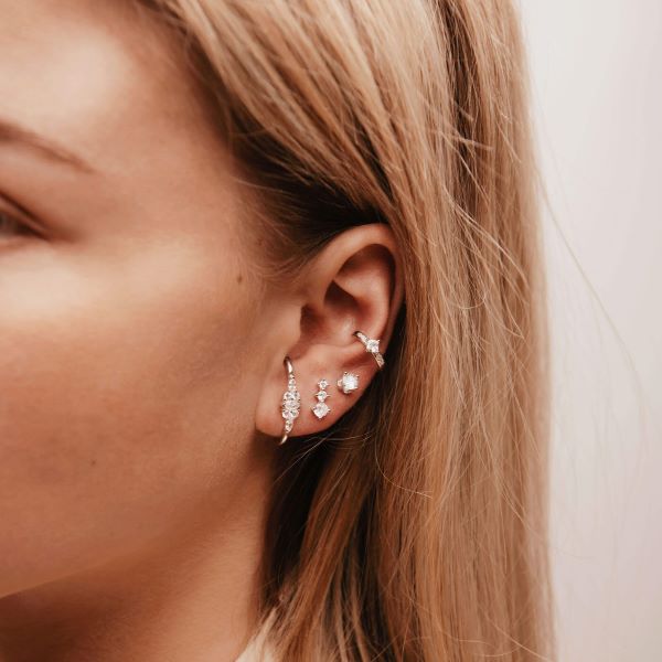 Kaip rodo pavadinimas „Bella“, šis auskaras atspindi amžiną grožį ir suteikia žavesio. Jis yra unikalios formos ir dėvimas gali būti pasuktas į skirtingas puses. Auskaras yra vienetinis ir tinka derinti su visais kitais auskarais.