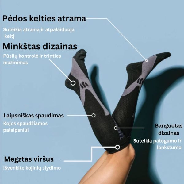 Nuo bėgimo iki važinėjimo dviračiu – „PRESSOSOX“ kojinės suteikia laisvę patogiai judėti, o kojos jaučia atramą, kad ir ką darytumėte.