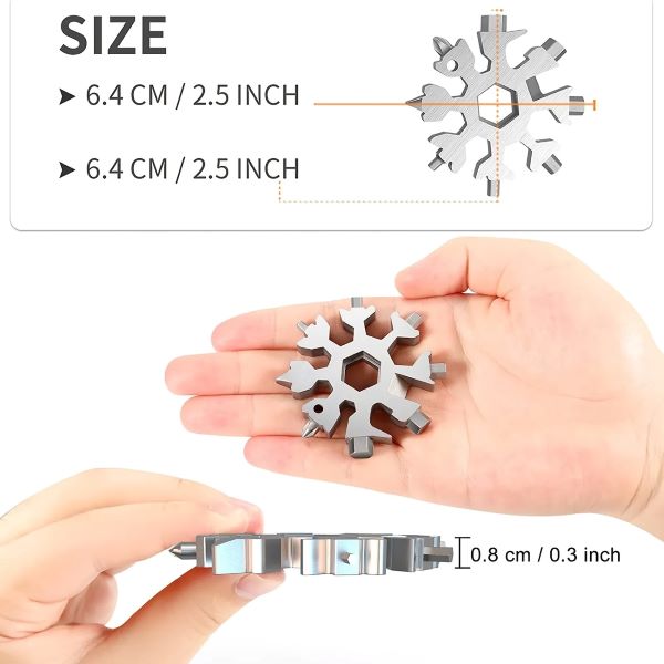Pakuotę sudaro: – Nerezinis nerūdijantis plienas, pagamintas iš nerūdijančio plieno: Komplekte: 1x snaigės formos daugiafunkcinis įrankis