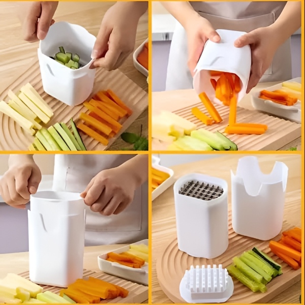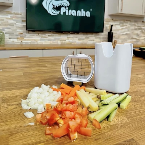 CHOPZY virtuvės įrankis skirtas ne tik bulvytėms fri; tai universalus daržovių pjaustytuvas, tinkantis morkoms, agurkams, svogūnams ir kitiems ingredientams, todėl maisto ruošimas tampa paprastesnis.