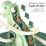 DINOCLIMBER turi dinozauro kalnelius su muzika ir ryškiomis šviesomis, sukuriančius įtraukiantį nuotykį, kai dinozaurai lipa laiptais, lydimi ritmo ir efektų.