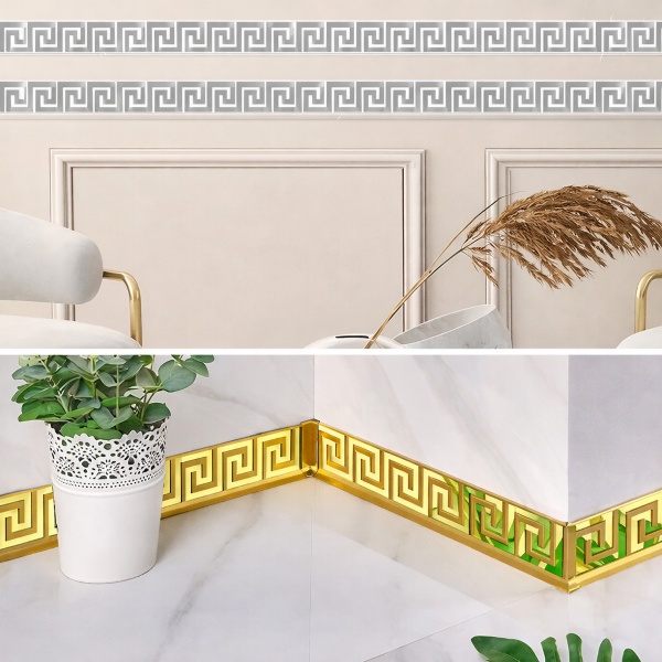 Lubų kraštų dekoras: Papuoškite lubų kraštus unikaliu, dėmesį traukiančiu dizainu, kuris nukreipia žvilgsnį į viršų.