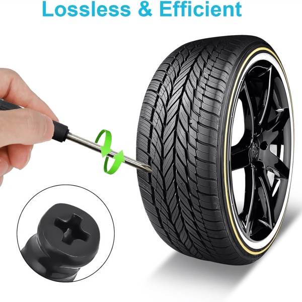 Tiesiog įsukite guminę vinį, kad greitai užsandarintumėte pradūrimą be automobilio kėlimo.