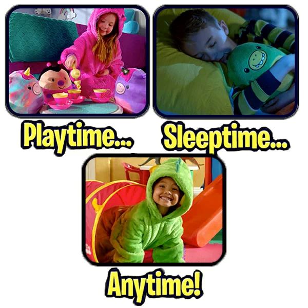 Kai ateis laikas miegoti, lengvai transformuokite gobtuvą atgal į pliušinį žaislą. Tai paprasta kaip 1-2-3. PILLOWPET yra puikus jūsų vaiko draugas miegui, filmų vakarams ir prisiglaudimui. Jį taip pat galima naudoti kaip pagalvėlę, kelionėje ar jaukiam voliojimuisi lovoje.