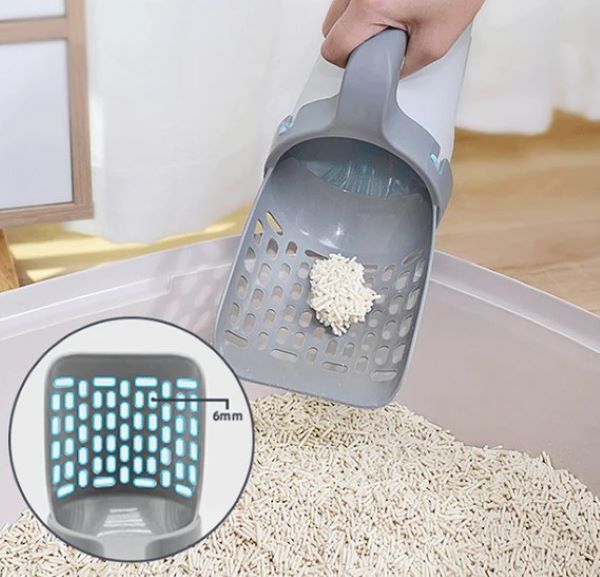 🐾 Inovatyvi kačių kraiko semtuvė su maišelio laikikliu leidžia lengvai ir švariai valyti.