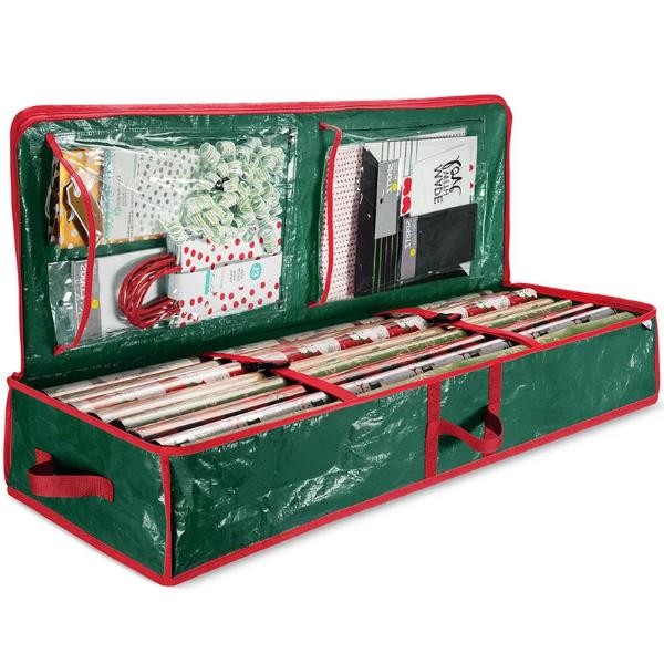 Šiame maiše, kuriame yra pakankamai vietos, saugomas visas šventinis vyniojamasis dovanų popierius, kad įtemptu šventiniu laikotarpiu viskas būtų vienoje vietoje ir lengvai pasiekiama.