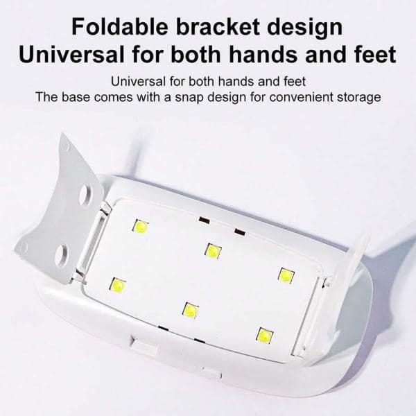 Ši nešiojamoji UV LED nagų džiovinimo lempa, turinti USB prievadą, gali būti patogiai prijungta prie kompiuterio, powerbank’o arba mobiliojo telefono įkroviklio, todėl manikiūro seansus galima atlikti bet kada ir bet kur.