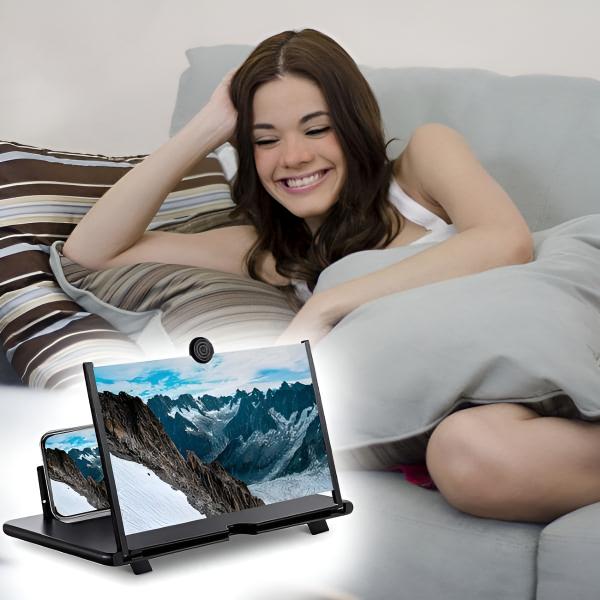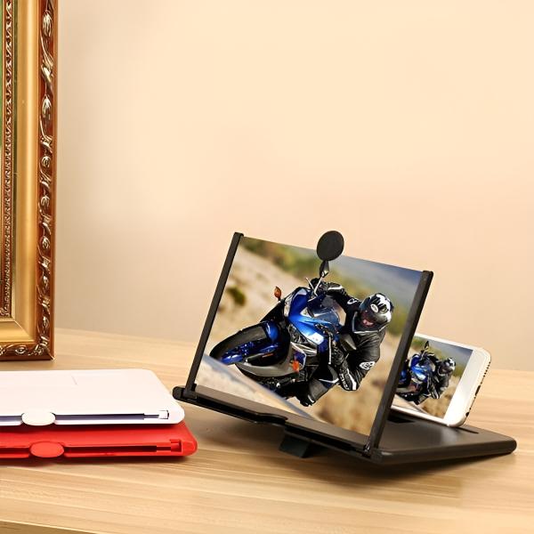 Modernaus dizaino ir patvariame korpuse telpa sulankstomas 3D didinamasis stiklas išmaniajam telefonui, kurio dydis leidžia nešiotis įtaisą su savimi į darbą, keliones ir visur kitur.