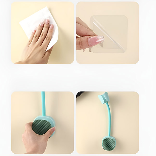 Paprasta sumontuoti ant bet kokio lygaus ir švaraus paviršiaus, nepažeidžiant sienos. Pridedami atsarginiai dvipusiai lipdukai saugiam tvirtinimui.