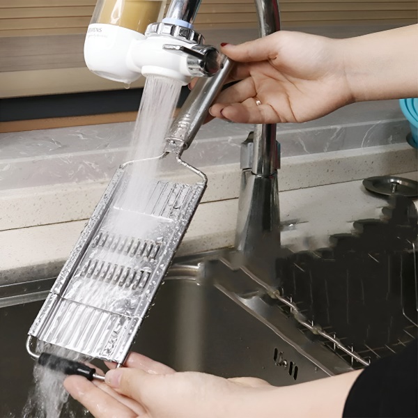 Valyti paprasta – tiesiog išimkite peiliukus ir nuplaukite po tekančiu vandeniu. Maisto likučius pašalinkite šepetėliu, kad kiekvieną kartą pjaustyklė būtų nepriekaištinga.