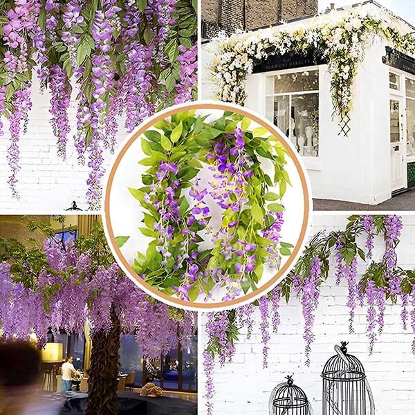 Vai esat noguris no īsto ziedu kopšanas, kas vīst un izbalē? WISBLOOM ir vistērijas ziedu imitācija ar efejas lapām, kas jūsu telpai piešķirs dabisku skaistumu bez rūpēm. Šie dinamiskie, reālistiskie karājas ziedi gadu no gada saglabāsies svaigi un krāsaini, nodrošinot, ka jūsu dārzs vai māja vienmēr izskatās satriecoši.